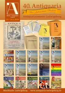 Die 40. Antiquaria feiert 2026 vier Jahrzehnte Vielfalt und lädt vom 22. bis 24. Januar ein, antiquarische Bücher, Autographen, Grafiken und Ephemera aus fünf Jahrhunderten zu entdecken und zu erwerben. Über 50 Antiquariate aus dem In- und Ausland sind vertreten.
