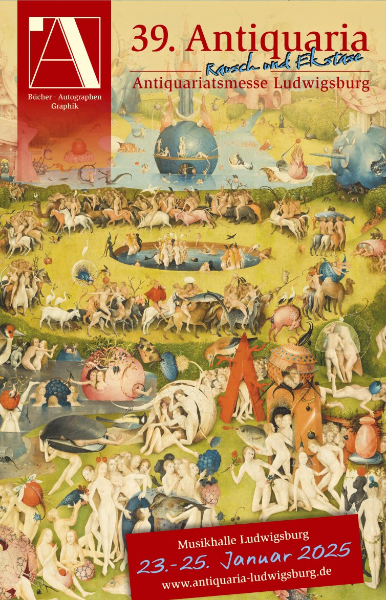 Der Katalog der 39. Antiquaria (2025) steht weiterhin zum Download bereit. Bitte beachten Sie, dass viele der dort gelisteten Objekte bereits verkauft oder nicht mehr verfügbar sind. Der Katalog bietet einen spannenden Einblick in die Vielfalt und Qualität des Messeangebotes.
